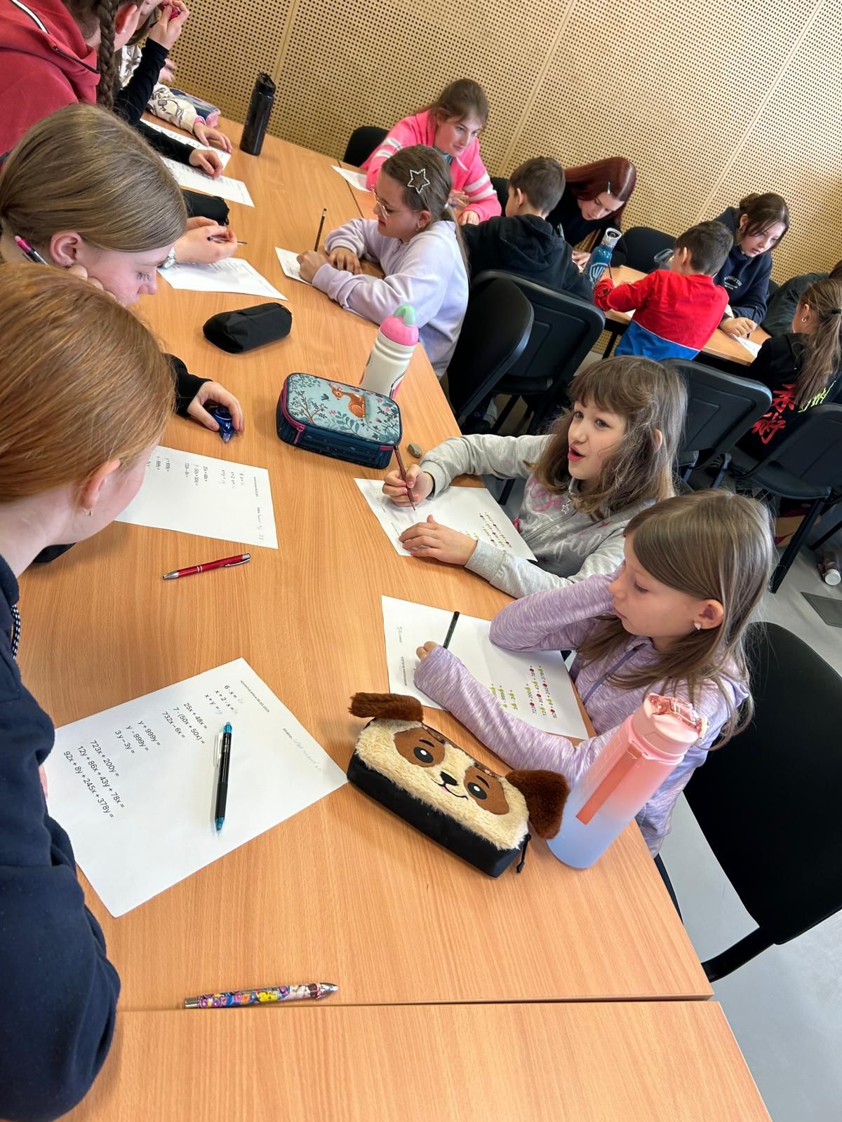 Žáci společně počítali dle pracovního listu, na kterém se třeťákům objevovaly počty jablíček a hrušek a s nimi řešili početní úlohy na sčítání, odčítání a násobení. Osmáci měli úplně stejný pracovní list, místo jablíček ovšem jejich práce obsahovala písmeno X a místo hrušek nacházeli písmeno Y. Vtip celé výuky byl v tom, že to, co zvládnou s jablíčky a hruškami třeťáci, zúročí ve svých příkladech osmáci ve výuce s proměnnými (písmenky). Výsledky obou pracovních listů byly stejné, proto tedy osmáci mohli pomáhat třeťákům, ale i naopak.