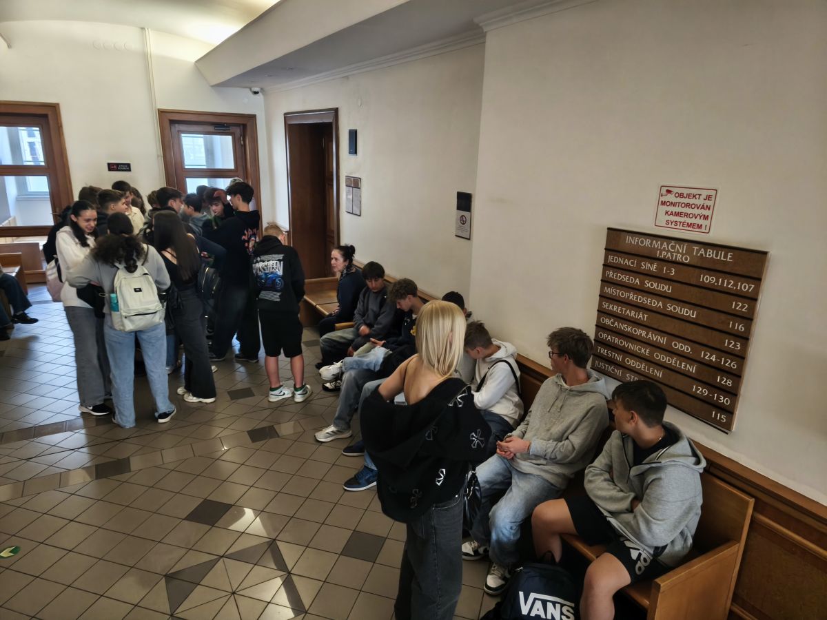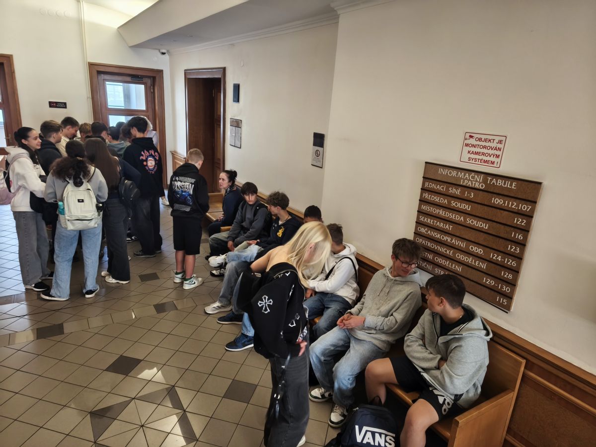 Třída 8.D v rámci předmětu Výchova k občanství absolvovala návštěvu soudu Praha - východ, kde se zúčastnila veřejného soudního přelíčení.
