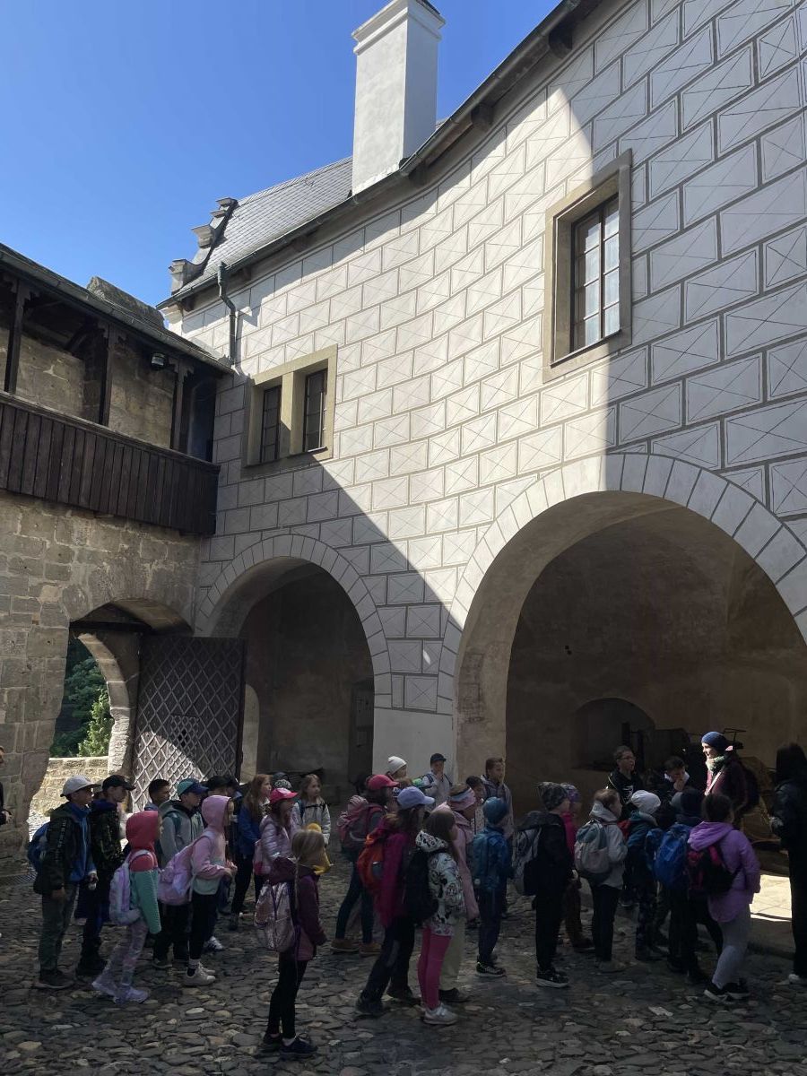 První naší zastávkou byl středověký hrad Kost, který nás okouzlil. Během prohlídky jsme nahlédli do zbrojnice, kaple, ložnice a kuchyně, kde jsme si mohli představit, jak se kdysi vařilo. Dozvěděli jsme se, proč se hrad jmenuje Kost a jestli byl někdy někým dobyt.