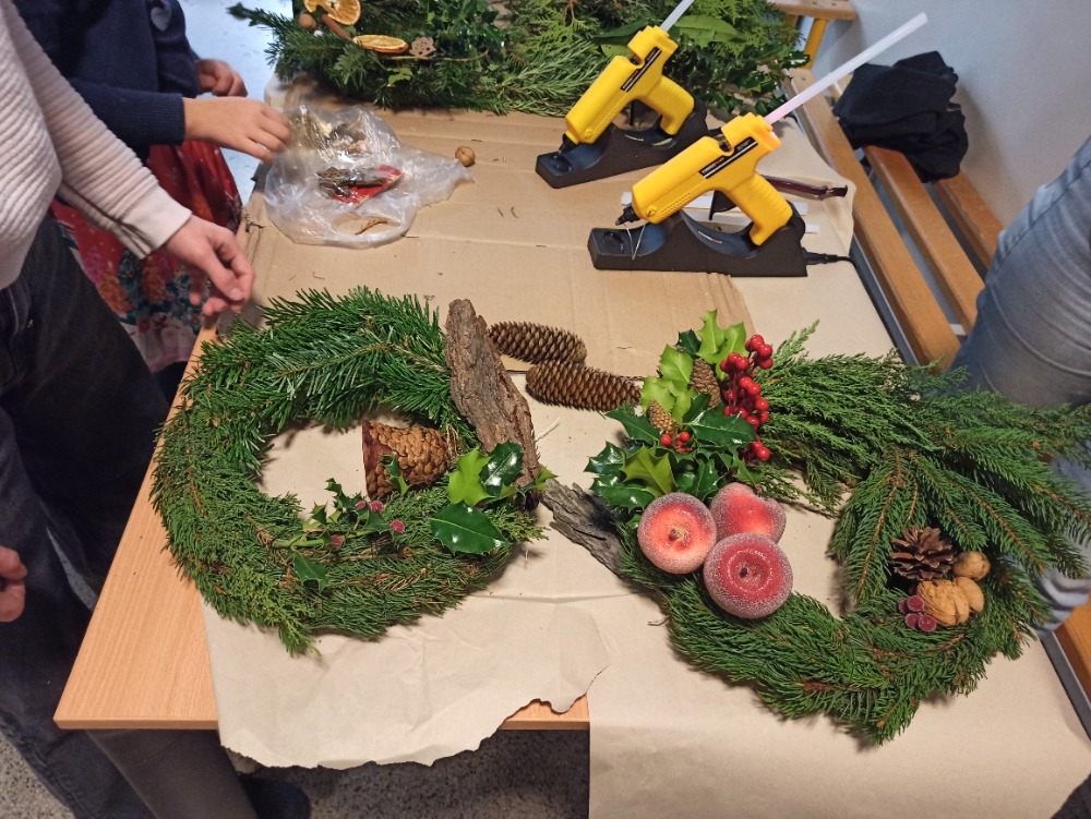 Adventní dílna, která proběhla v sobotu 28. listopadu, se velmi vydařila a nesla se v příjemné, tvořivé atmosféře. Účastníci všech věkových kategorií se s chutí pustili do práce, používali různé techniky zdobení, kombinování přírodních materiálů i tvorbu vlastních dekorací. Během dopoledne vznikla celá řada originálních, krásně nazdobených věnců. Pod vedením zkušené lektorky Anežky z 8. třídy si děti také mohly vyzkoušet výrobu papírových hvězd. Nechyběla vůně jehličí a zpívání u cimbálu, které umocnilo adventní náladu. Děkujeme všem, nám pomáhali i těm, kteří se do dílny zapojili, za jejich nadšení. Společně jsme vytvořili nejen krásné věnce, ale hlavně strávili příjemný čas ve společnosti lidí, kteří mají radost z tvoření. Už teď se těšíme na příští setkání!